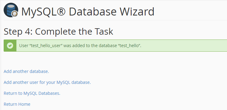 تبریک! یوزر، پسورد و دیتابیس شما آماده است!
