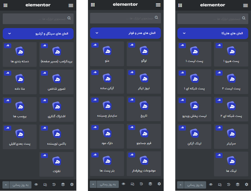 - ابزارک های اختصاصی برای طراحی هدر و فوتر با المنتور