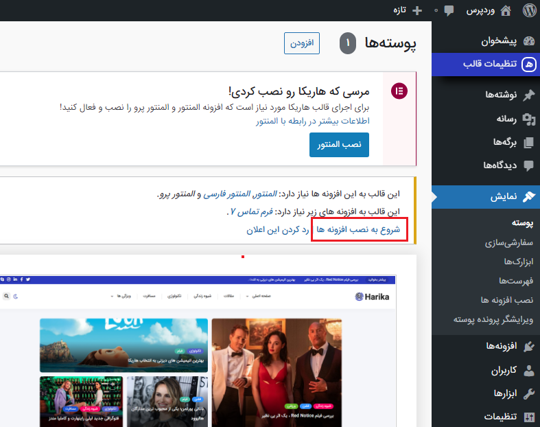 در این بخش از آموزش یاد خواهید گرفت که چگونه قالب هاریکا را به صورت دستی و از طریق داشبورد وردپرس نصب و محتوای آن را درون ریزی کنید.