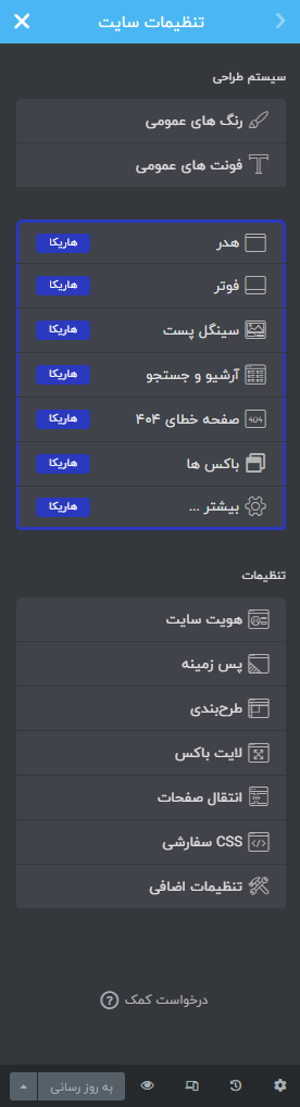 برای طراحی و ویرایش هدر، فوتر و سینگل پست به قسمت "قالب ها > پوسته ساز" مراجعه کنید.